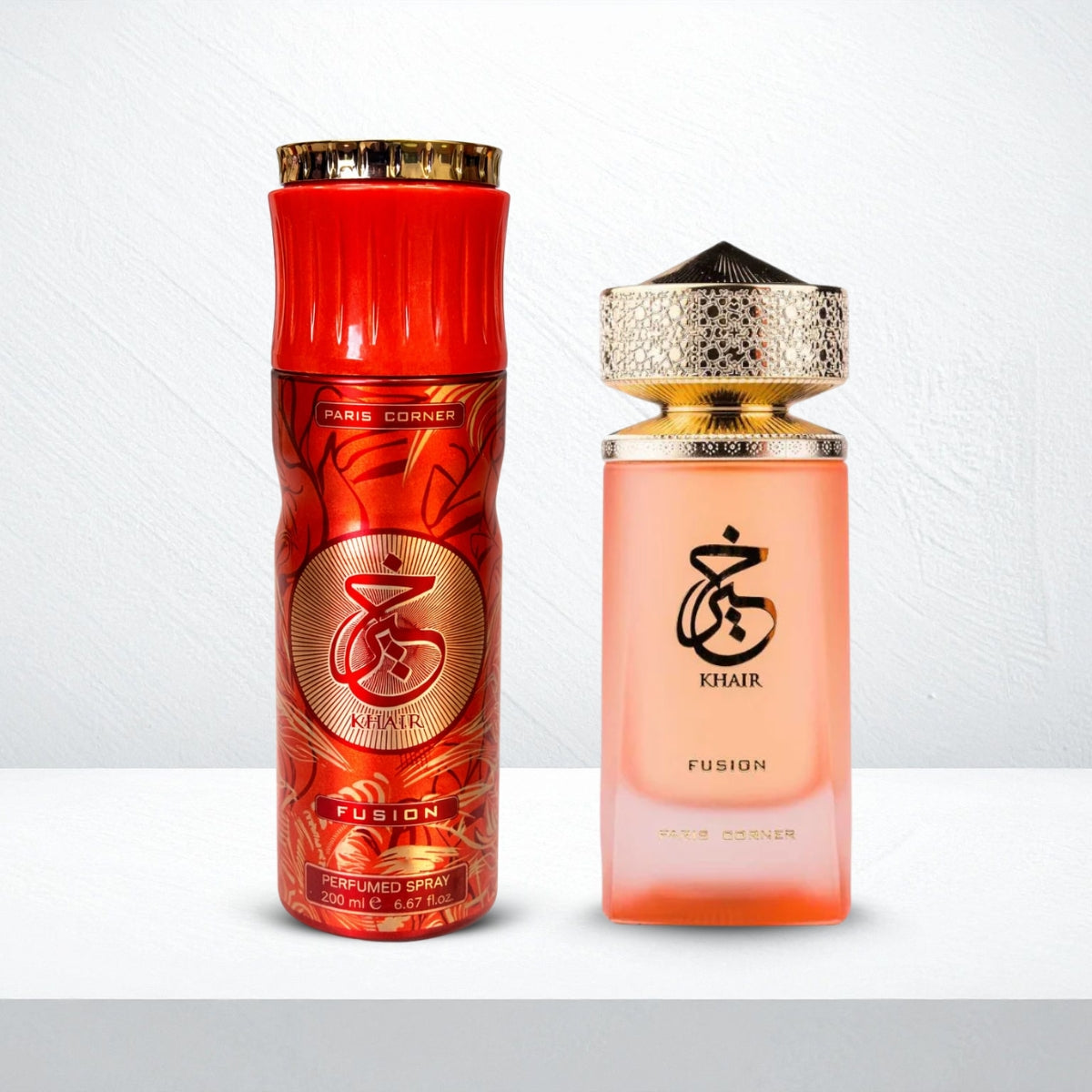 Experience the ultimate fruity-floral indulgence with the Khair Fusion Lyche Bundle, featuring both the signature Eau de Parfum and matching Deodorant. Perfectly paired, they deliver a long-lasting, refreshing, and elegant fragrance experience from morning to night.