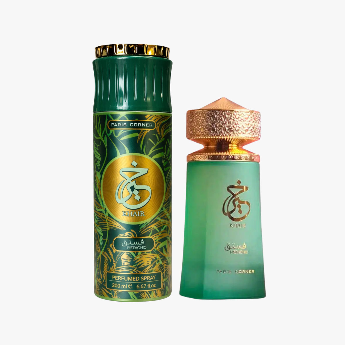 Khair Pistachio Perfume & Body Spray Bundle – 200ml + 100ml
