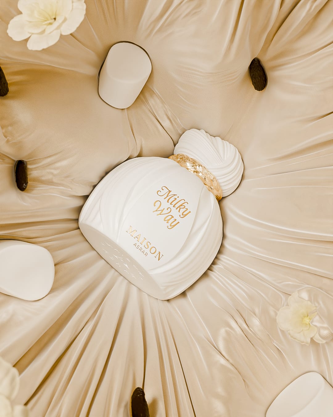 Milky Way by Maison Asrar envelopes you in creamy elegance, blending milk, caramel, and vanilla with floral notes of ylang-ylang, jasmine, orris, and a soft woody base of tonka and sandalwood. The result is a warm, comforting scent that feels both indulgent and sophisticated, perfect for cooler days when you crave cozy elegance.