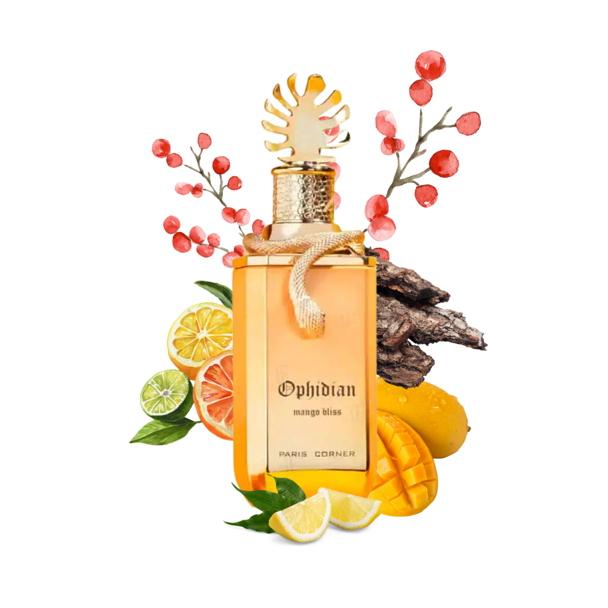 The Ophidian Mango Bliss Perfume by Paris Corner is a unisex fragrance that features a fruity and woody scent. It comes in a 100ml (3.38 fl oz) EDP bottle, perfect for everyday use. Delight in the zesty blend of mango, ginger, lemon and red berries that will leave you feeling refreshed and invigorated.
